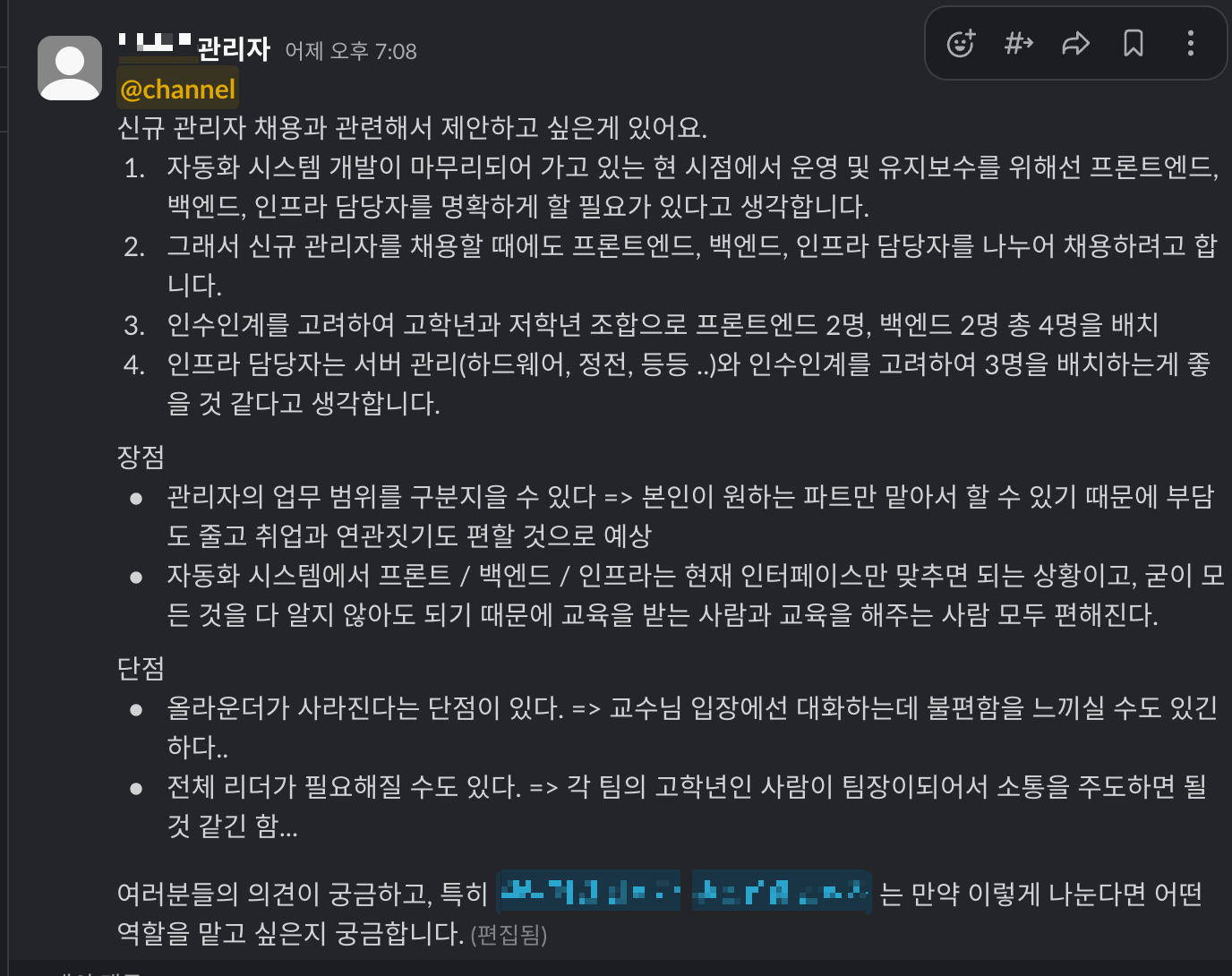 1년이 지났고, 새로운 서버 관리자 한 명을 영입하게 되었다.